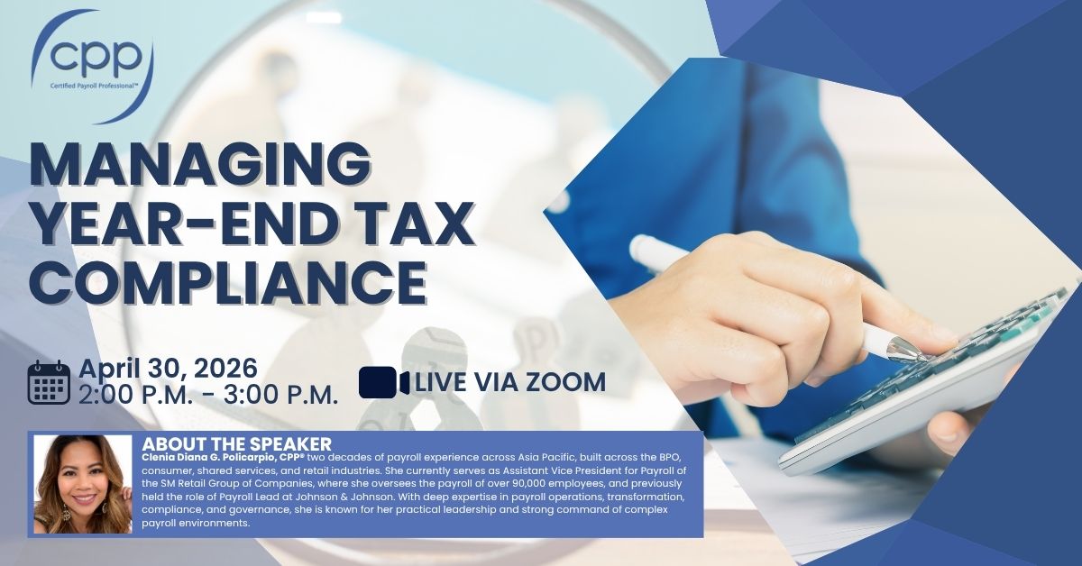 Clenia Diana G. Policarpio, CPP® – two decades of payroll experience across Asia Pacific, built across the BPO, consumer, shared services, and retail industries. She currently serves as Assistant Vice President for Payroll of the SM Retail Group of Companies, where she oversees the payroll of over 90,000 employees, and previously held the role of Payroll Lead at Johnson & Johnson. With deep expertise in payroll operations, transformation, compliance, and governance, she is known for her practical leadership and strong command of complex payroll environments.